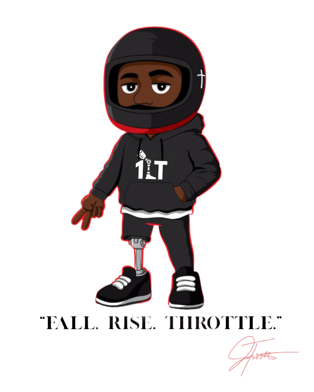 Founded by Jerald “J Throttle” Scott, a faith-driven creator and amputee rider from Houston, Texas, One Leg Throttle was born from the road where faith meets resilience.